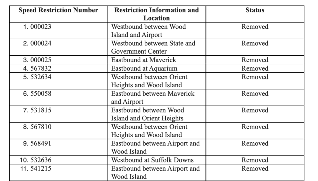 Here’s an Update from MBTA about the Blue Line Work including removing speed restrictions